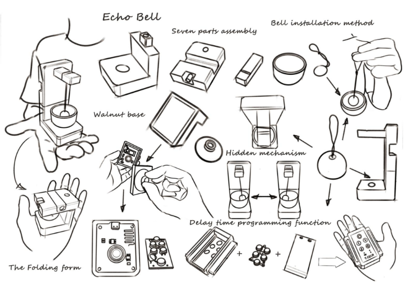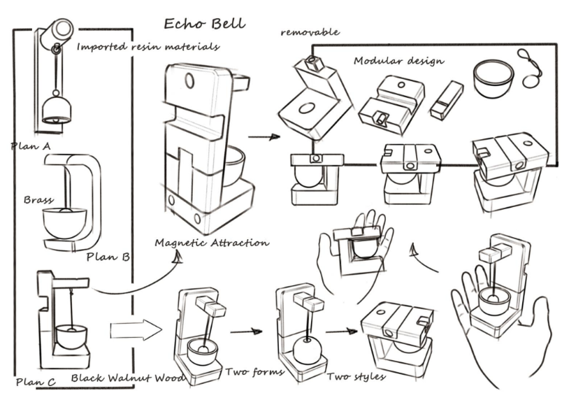 在確立 北美黑胡桃木 × 黃銅鈴鐺 的材質組合後,造型便顯得至關重要。