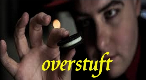 前一陣子紅極一時的串聯口哨糖讓陳日昇魔術愛不釋手,但總有人詬病雖然方便好攜帶,但是台灣沒有一模一樣的糖果,也是個容易讓觀眾起疑的缺點。 而Bizzaro 所發明的Oreo 餅乾也能拿來變魔術,先把Oreo轉一轉,再舔一舔,然後居然還可以復原,甚至可以來個奶油瞬間移動,真是太有趣了..."Overstuft by Bizzaro"