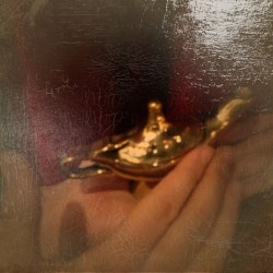 找了1001夜終於被阿拉丁找到了他的神燈! 搓一搓這個神燈,精靈就會化成迷霧! 可以請觀眾搓一撮冒出煙然後魔術師就可以帥氣登場了!