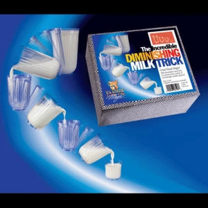 任何東西都能走個高級路線,魔術道具也不例外。Diminishing Milk 是有著物質不滅原理的表演流程的牛奶杯道具,這道具有印度製(Uday)的便宜版本(非一體成型容易破裂、有腳座,不好收藏),所以義大利廠商(Di Fatta)重新製作出一體成型,無腳座的版本,而且杯壁較厚,看起來比較有厚實感,不像玩具。