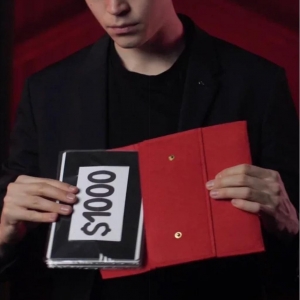 "魔術展示放在透明袋中的5個板子,這意味著完全無遮掩。 板子的正面標示著1~5個號碼,背面可以是任何內容。 觀眾任選一個號碼(完全任選、不強迫)。 觀眾沒選的號碼,背後內容都是10000元。 只有觀眾所選的號碼,對應的內容是『擁抱』!!"