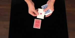 @一連串的效果一起發生 當觀眾欣賞到這些精彩有趣的事情時,一連串的效果發生了——整副牌從藍色變成了紅色……然後所有的牌面也都變了。紅色花色的牌變黑色…黑色花色的牌變成紅色。魔術師隨意地把一把牌遞給驚訝的觀眾。