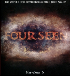 魔術師邀請兩位觀眾共同參與魔術,A觀眾想一個號碼,B觀眾想一張牌,沒有人知道他們想的是什麼內容,魔術師將自己的皮夾拿出來,夾層裡有一個未拆封的信封,信封裡有一張卡片,卡片上的圖案正是B觀眾所想的牌,而A觀眾所想的號碼就在卡片的背面.....上述效果只是Fourseen Wallet 的眾多效果之一,Fourseen Wallet可以透視、牌入皮夾、心靈、還可以一次偷看四個秘密,這麼多這麼多的用途,難怪Matthew Wright 需要用兩片DVD來告訴大家如何好好的利用這絕無僅有的Fourseen Wallet。