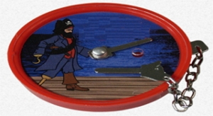 魔術展示一個拿著寶劍的武士,可以控制上下揮動,然後把一根牙籤插入寶劍揮舞時會經過的洞(可以百分百確認已經插入),請觀眾握著操作武士揮劍,沒想到,武士失誤了....寶劍居然可以穿過牙籤,百士無誤啊.."Samurai mistakes by way"